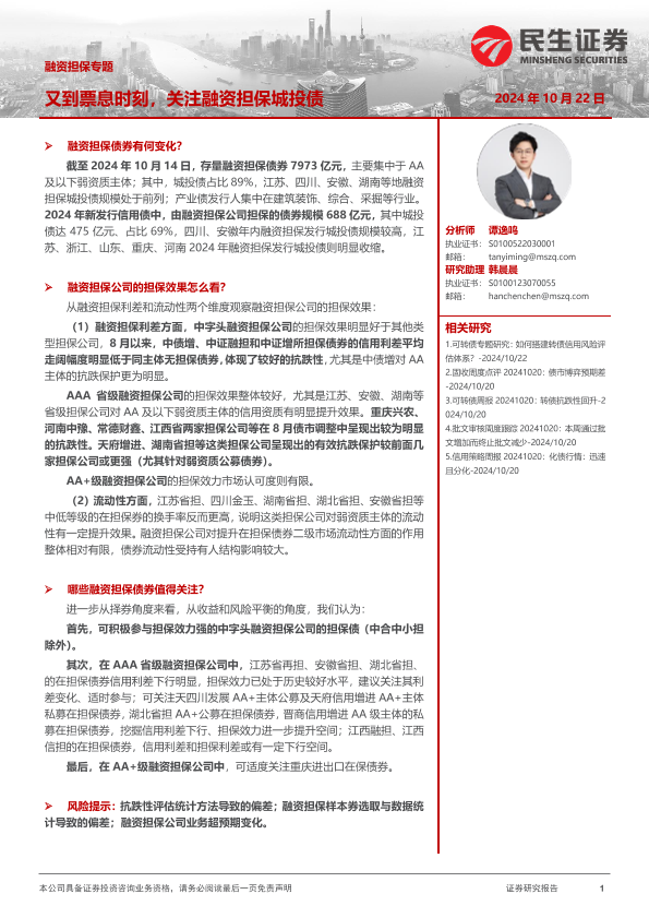 【民生证券】【20241022】2024年10月24日更新-融资担保专题:又到票息时刻关注融资担保城投债-29页