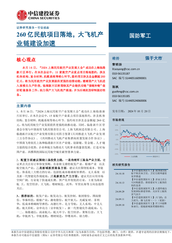 【中信建投证券】【20241020】260亿民航项目落地,大飞机产业链建设加速-24页