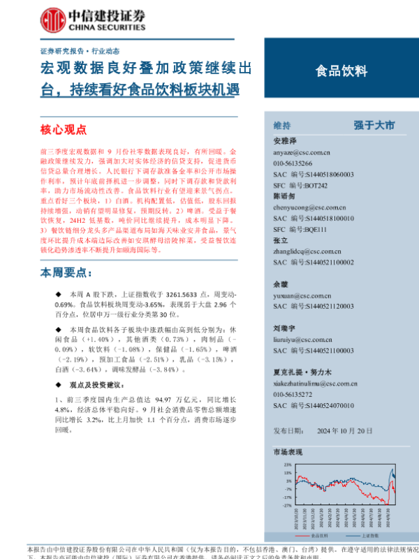 【中信建投证券】【20241020】2024年11月02日更新-【中信建投】食品饮料行业:宏观数据良好叠加政策继续出台,持续看好食品饮料板块机遇-21页