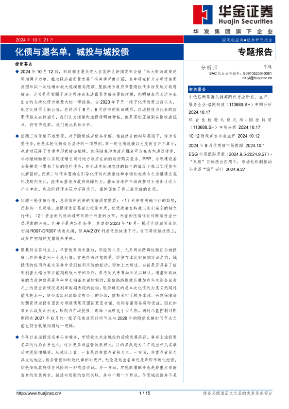 【华金证券】【20241021】2024年11月04日更新-【华金证券】专题报告:化债与退名单,城投与城投债-15页