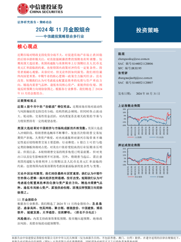 【中信建投证券】【20241031】2024年11月金股组合:策略联合多行业-10页