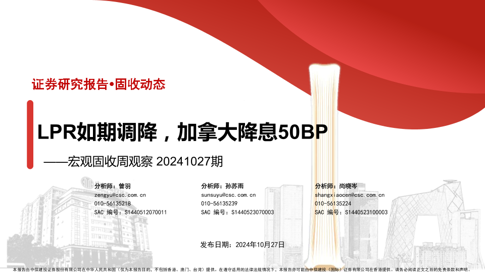 【中信建投证券】【20241027】宏观固收周观察期:LPR如期调降,加拿大降息50BP-31页