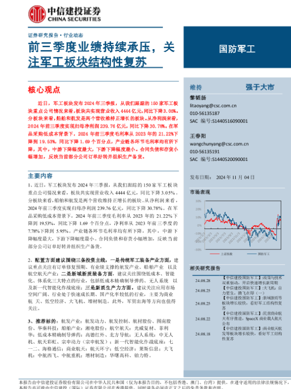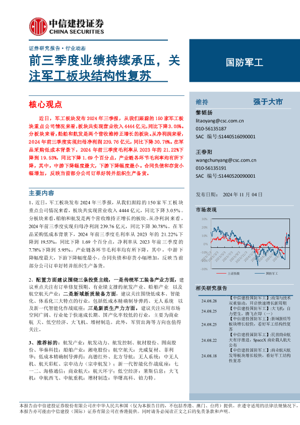 【中信建投证券】【20241104】2024年11月14日更新-【中信建投】国防军工行业:前三季度业绩持续承压,关注军工板块结构性复苏-36页