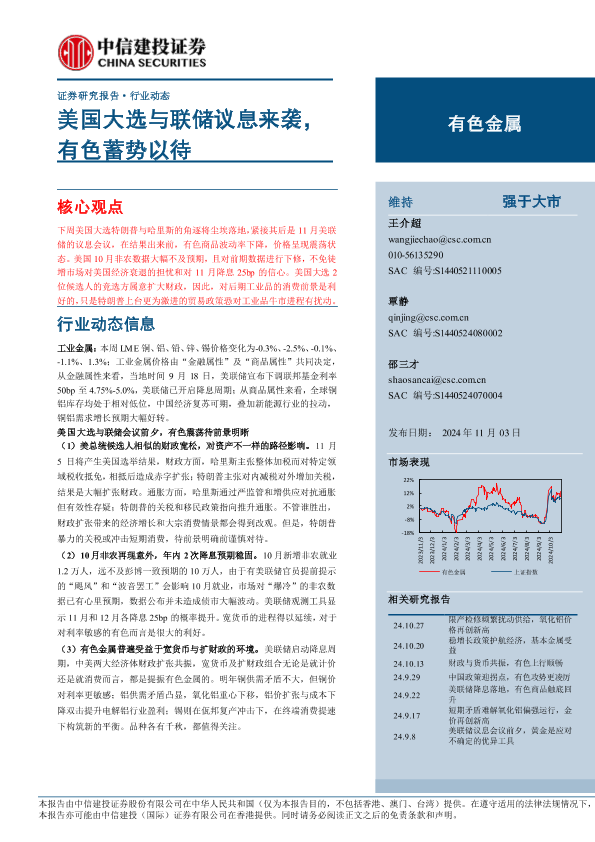 【中信建投证券】【20241103】2024年11月18日更新-【中信建投】有色金属行业:美国大选与联储议息来袭,有色蓄势以待-12页