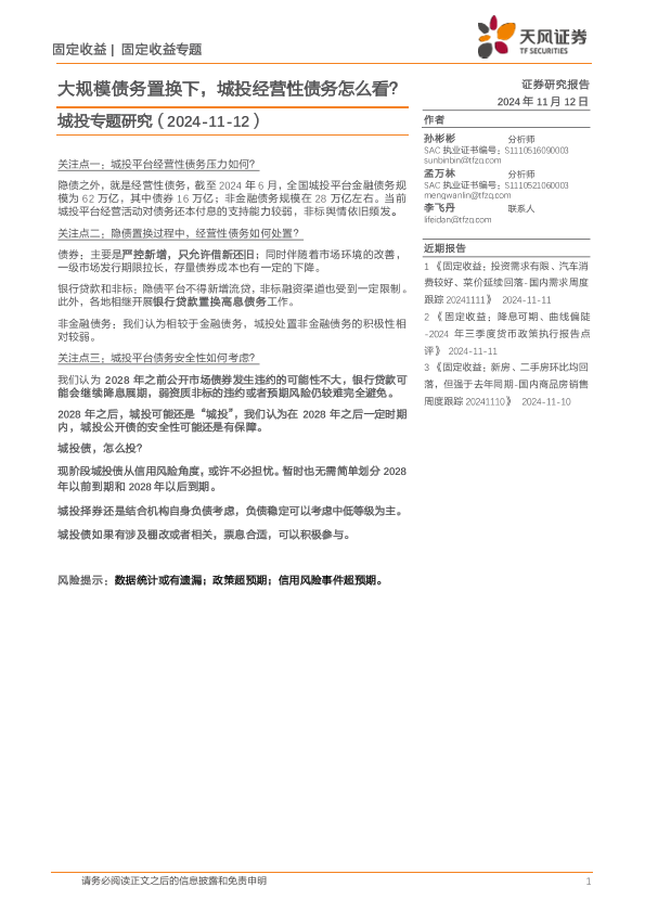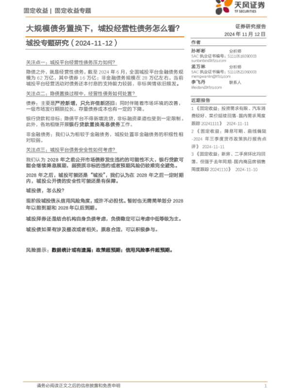 【天风证券】【20241112】大规模债务置换下,城投经营性债务怎么看-13页