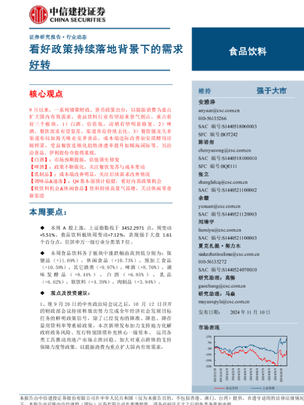 【中信建投证券】【20241110】2024年11月25日更新-【中信建投】食品饮料行业:看好政策持续落地背景下的需求好转-25页