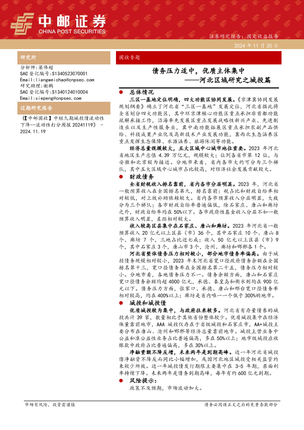 【中邮证券】【20241129】河北区域研究之城投篇:债务压力适中,优质主体集中-21页