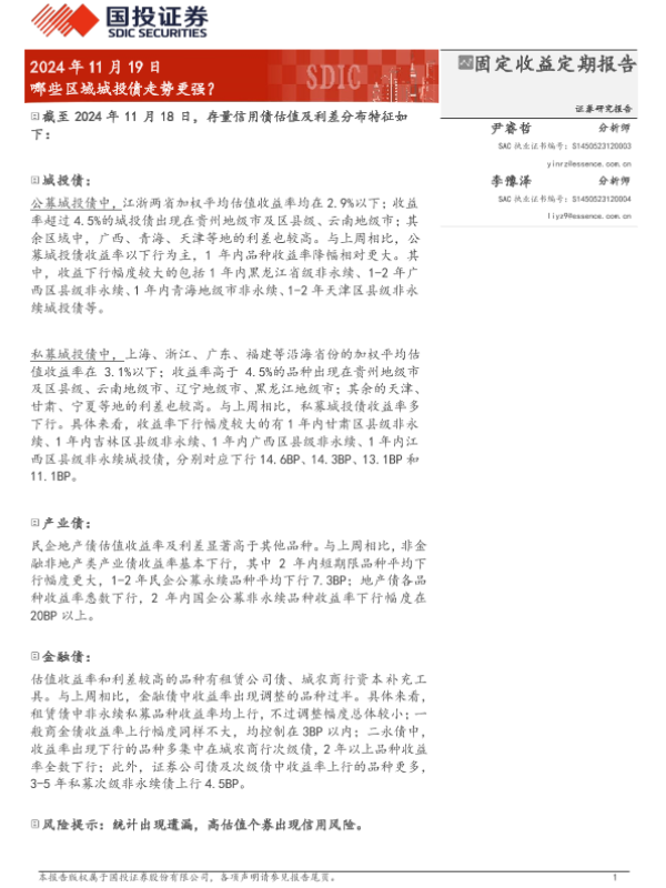 【国投证券】【20241129】2024年11月29日更新-【国投证券】固定收益定期报告:哪些区域城投债走势更强-19页