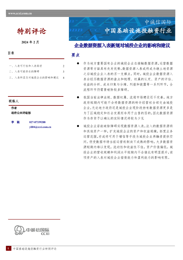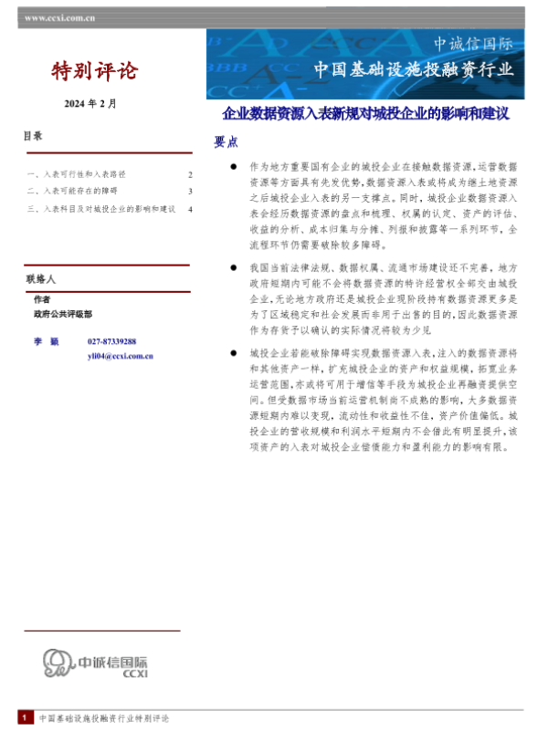【中诚信国际】【20241213】中国基础设施投融资行业:企业数据资源入表新规对城投企业的影响和建议-5页