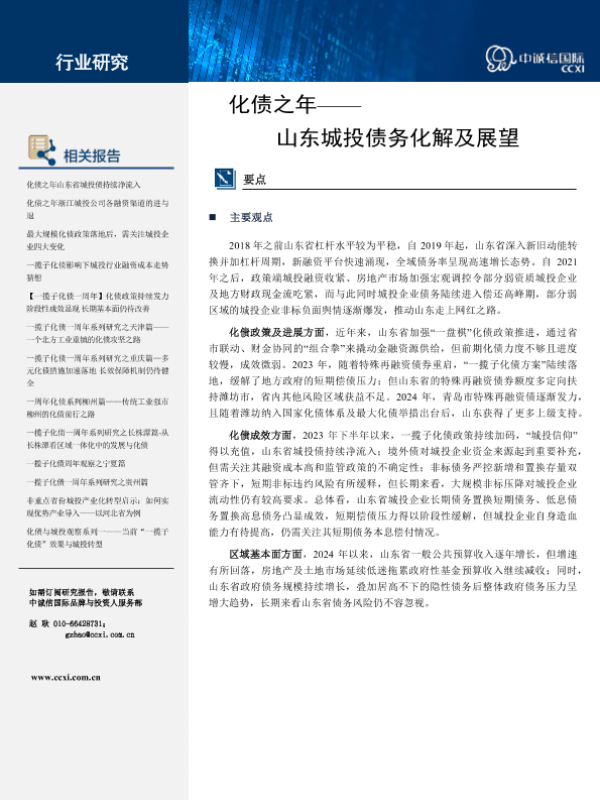 【中诚信国际】【20241214】化债之年——山东城投债务化解及展望研究报告-12页