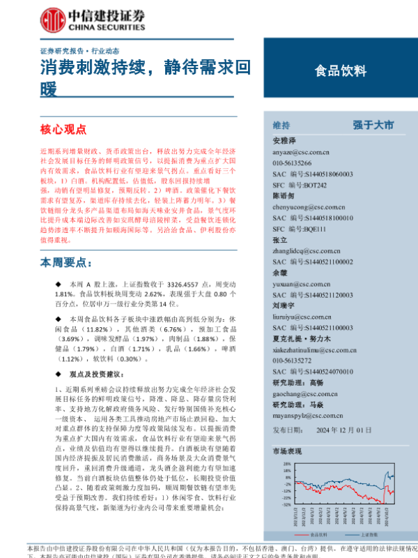 市场表现 投资建议 政策分析 消费刺激 食品饮料