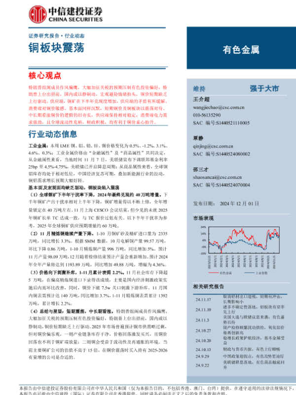 【中信建投证券】【20241201】2024年12月16日更新-【中信建投】有色金属行业:铜板块震荡-12页