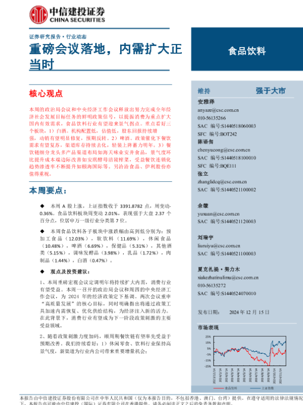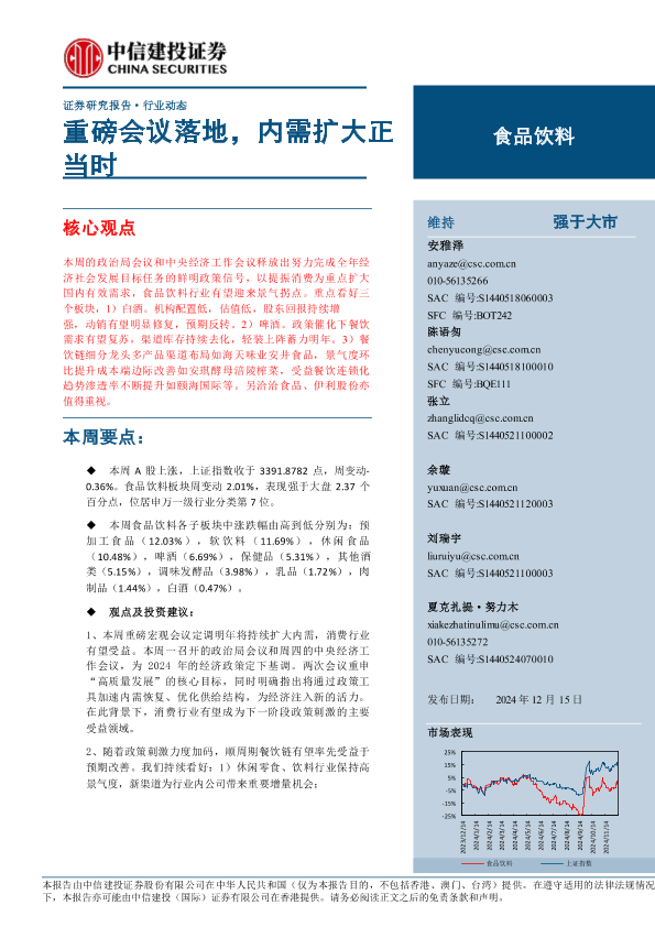 【中信建投证券】【20241215】2024年12月29日更新-【中信建投】食品饮料行业:重磅会议落地,内需扩大正当时-19页