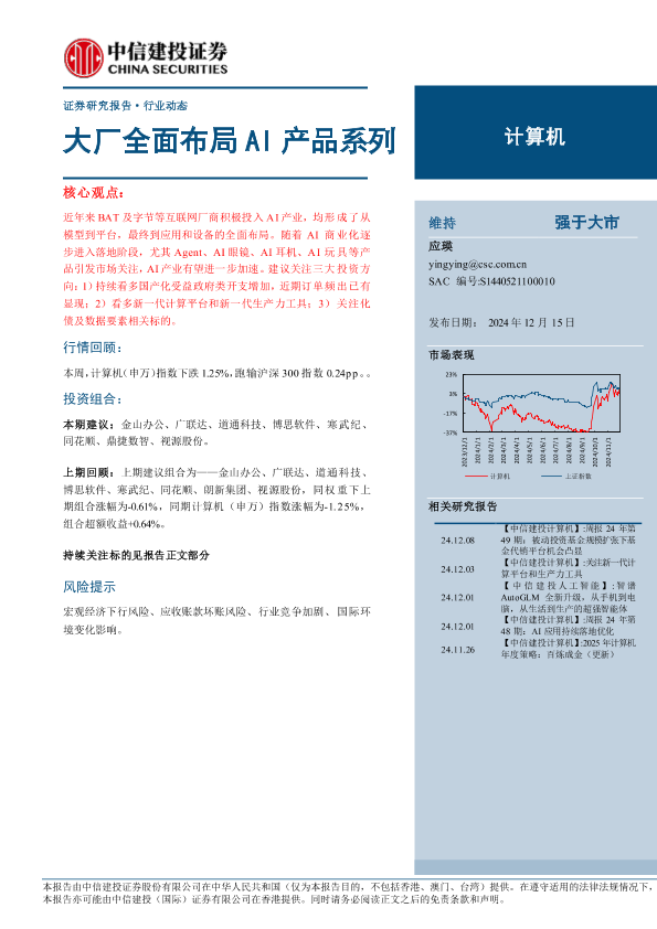 【中信建投证券】【20241215】2024年12月27日更新-【中信建投】计算机行业:大厂全面布局AI产品系列-13页
