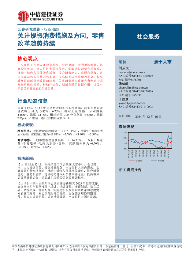 【中信建投证券】【20241216】2024年12月29日更新-【中信建投】社会服务行业动态:关注提振消费措施及方向,零售改革趋势持续-25页