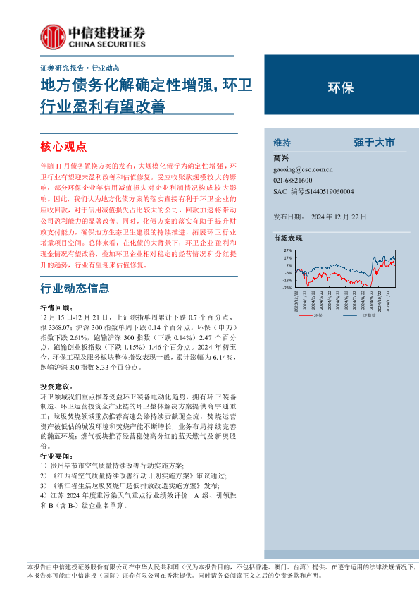 【中信建投证券】【20241222】2025年01月03日更新-【中信建投】环保行业动态:地方债务化解确定性增强,环卫行业盈利有望改善-12页