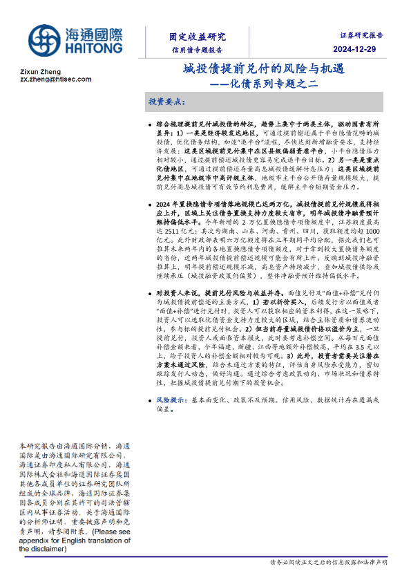 【固定收益研究】【20250103】城投债提前兑付的风险与机遇——化债系列专题之二-18页