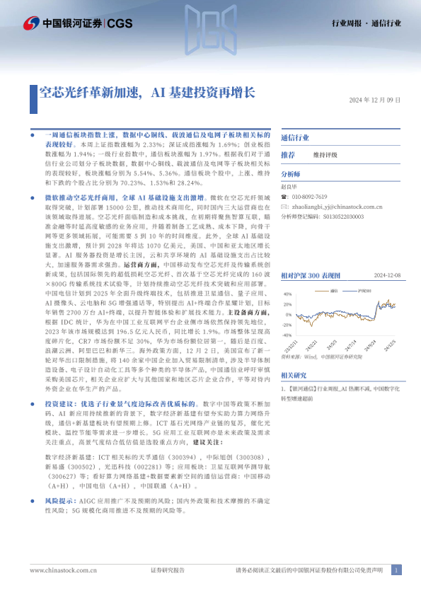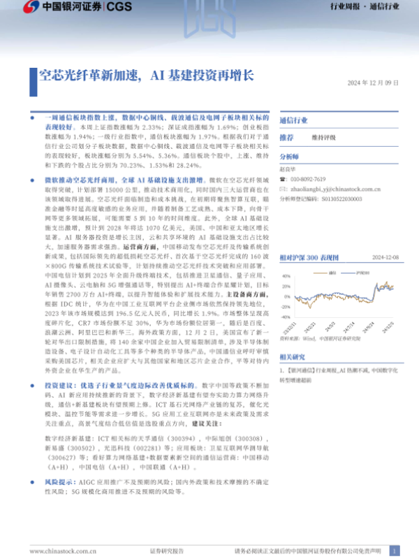 【银河证券】【20250108】通信行业周报:空芯光纤革新加速,AI基建投资再增长-15页