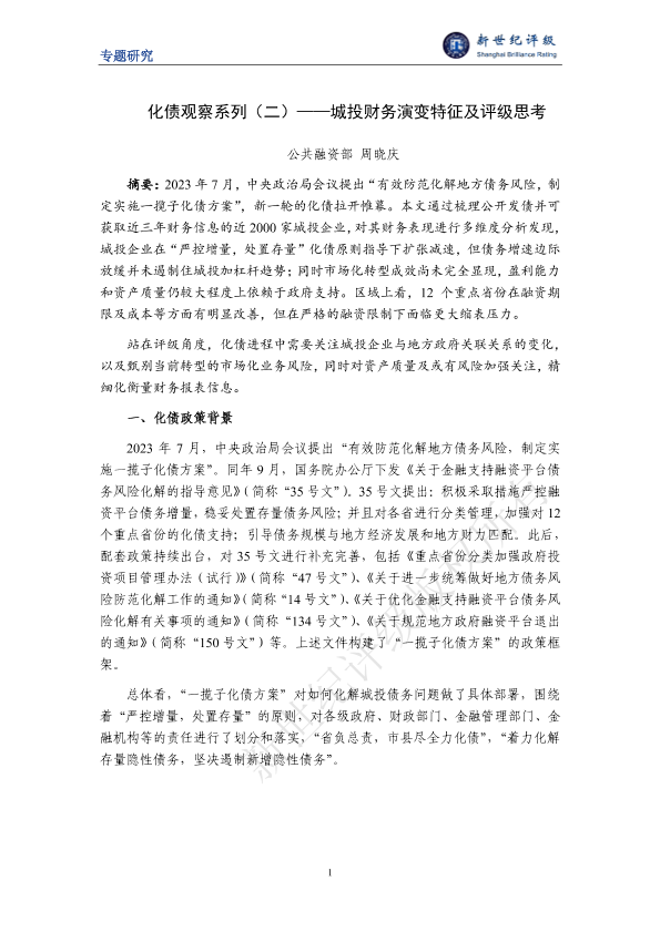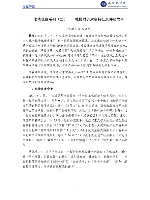 【公共融资部周晓庆】【20250111】化债观察系列(二)——城投财务演变特征及评级思考-19页