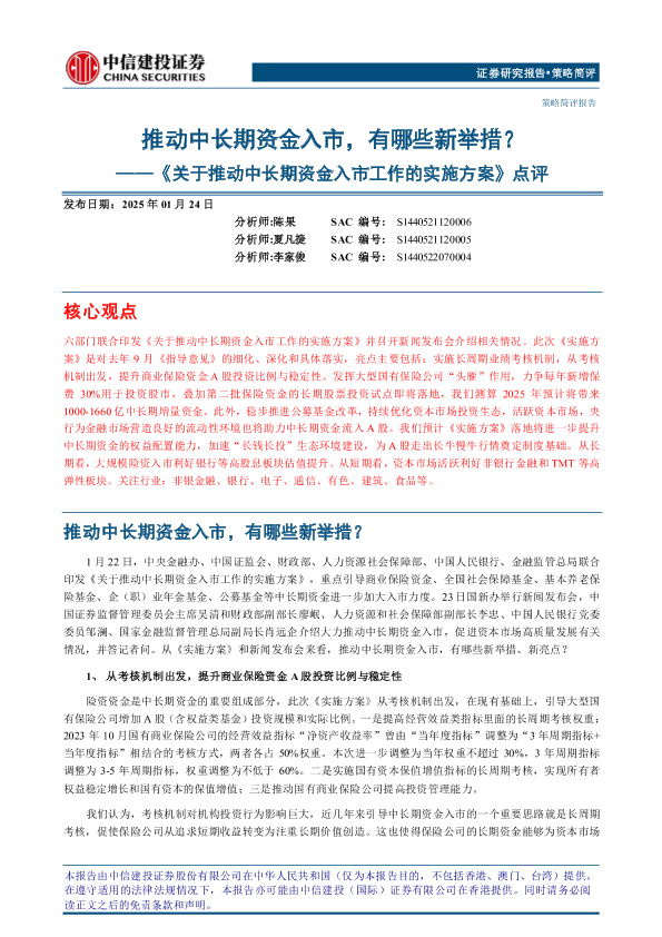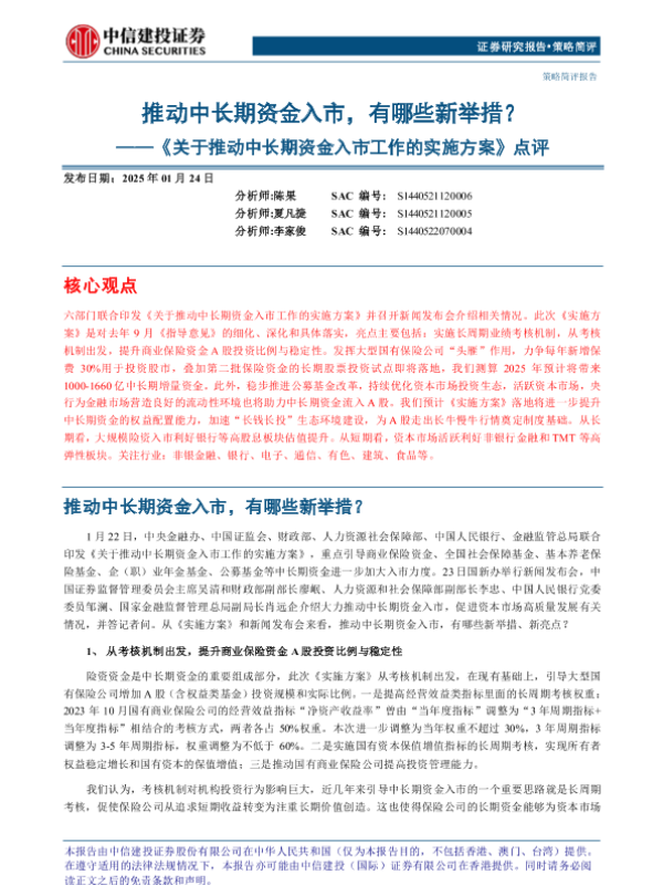 【中信建投证券】【20250124】关于推动中长期资金入市工作的实施方案点评:推动中长期资金入市,有哪些新举措-10页