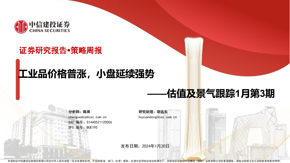 【中信建投证券】【20240120】2025年02月07日更新-【中信建投】估值及景气跟踪1月第3期:工业品价格普涨,小盘延续强势-28页