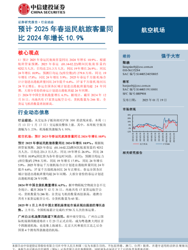 【中信建投证券】【20250119】2025年02月07日更新-【中信建投】航空机场行业动态:预计2025年春运民航旅客量同比2024年增长10.9%-20页