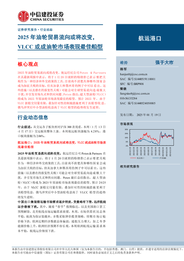 【中信建投证券】【20250119】2025年02月07日更新-【中信建投】航运港口行业动态:2025年油轮贸易流向或将改变,VLCC或成油轮市场表现最佳船型-24页