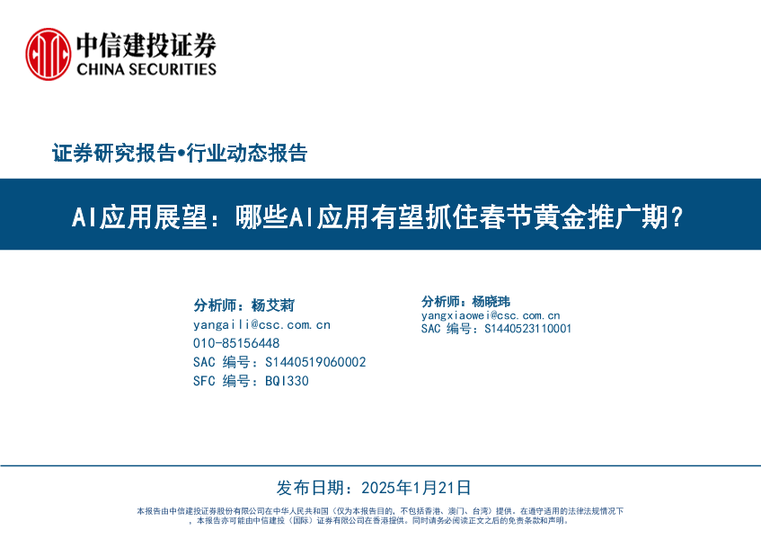 【中信建投证券】【20250121】人工智能行业AI应用展望:哪些AI应用有望抓住春节黄金推广期-31页