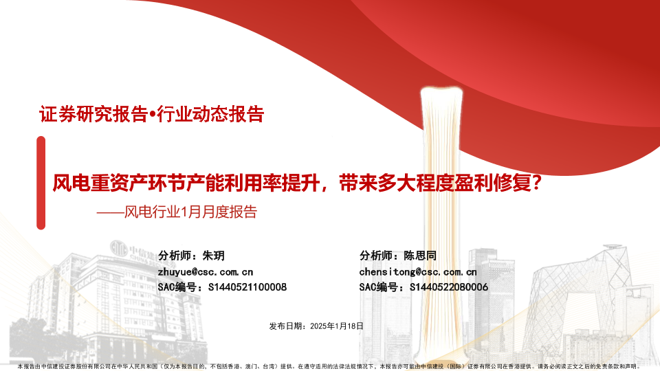 【中信建投证券】【20250118】风电行业1月月度报告:风电重资产环节产能利用率提升,带来多大程度盈利修复-35页