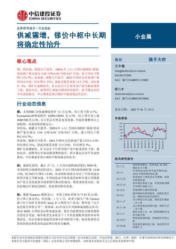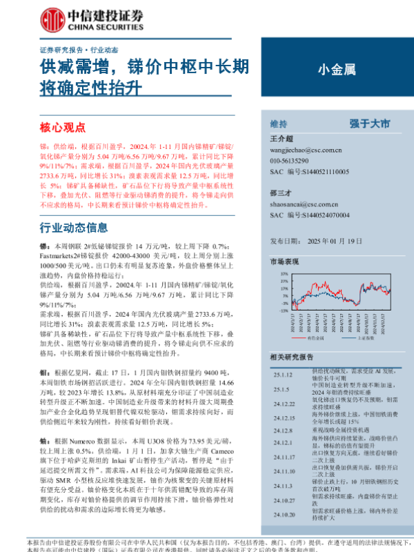 【中信建投证券】【20250119】小金属行业:供减需增,锑价中枢中长期将确定性抬升-10页