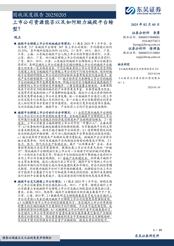 【东吴证券】【20250205】2025年02月14日更新-【东吴证券】固收深度报告:上市公司资源能否以及如何助力城投平台转型-19页