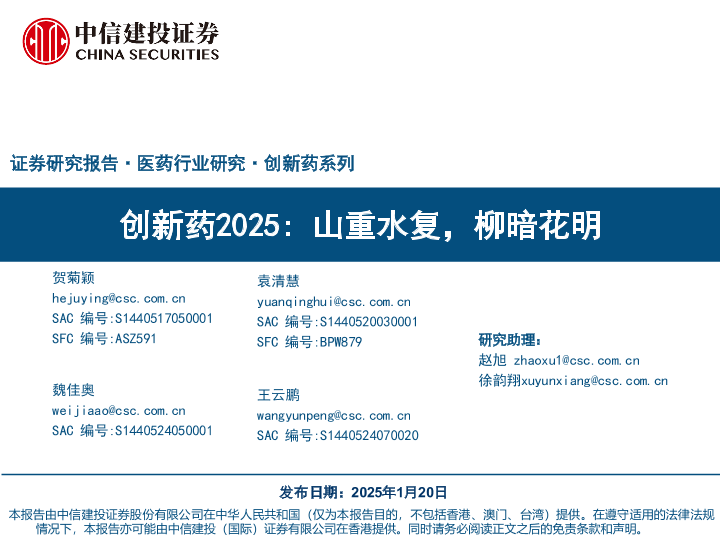 【中信建投证券】【20250120】医药行业创新药2025:山重水复,柳暗花明-170页