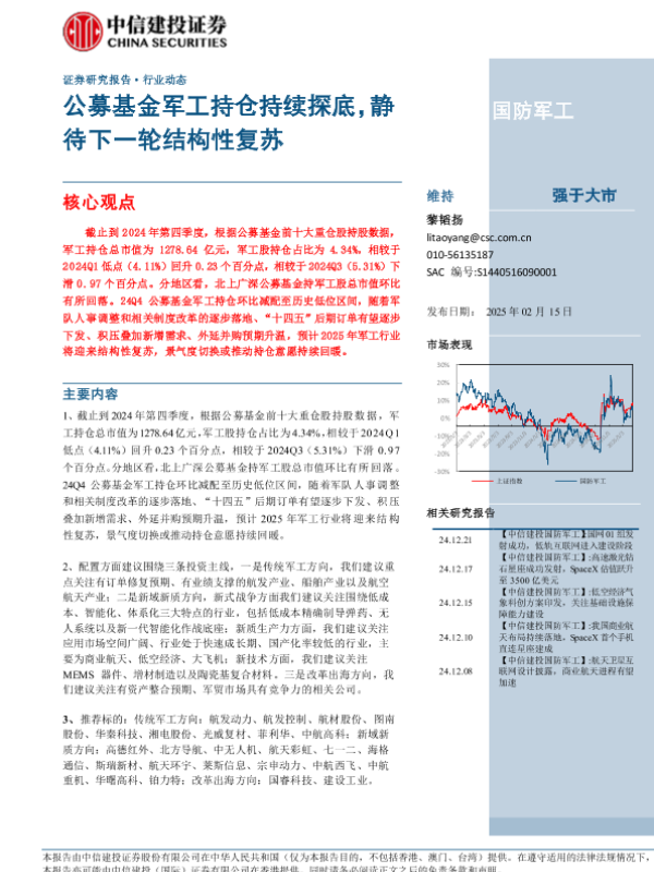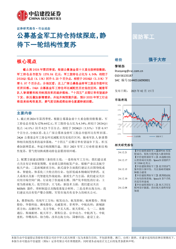 【中信建投证券】【20250219】国防军工行业:公募基金军工持仓持续探底,静待下一轮结构性复苏-26页