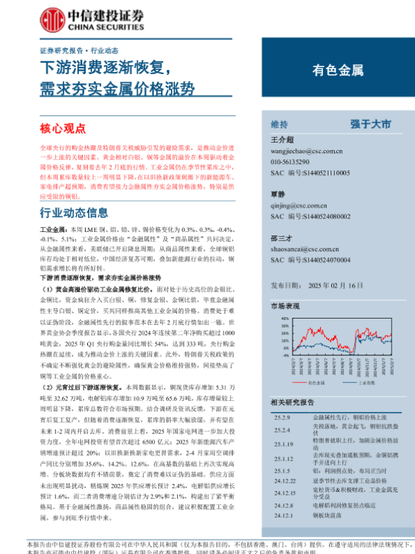 【中信建投证券】【20250216】2025年03月03日更新-【中信建投】有色金属行业:下游消费逐渐恢复,需求夯实金属价格涨势-12页