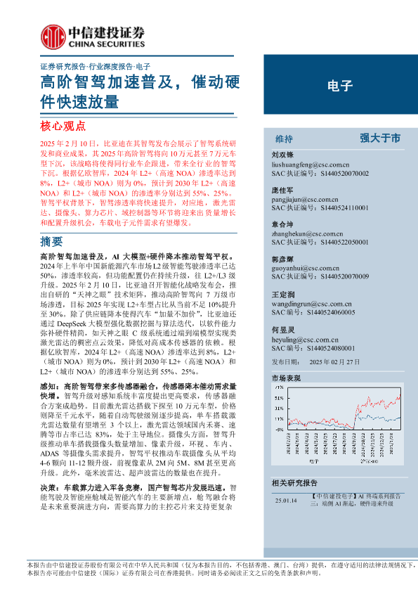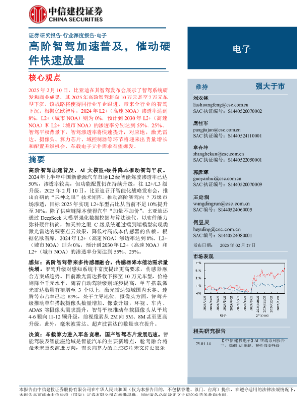 【中信建投证券】【20250227】2025年03月03日更新-【中信建投】电子行业:高阶智驾加速普及,催动硬件快速放量-37页