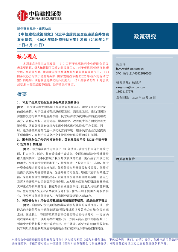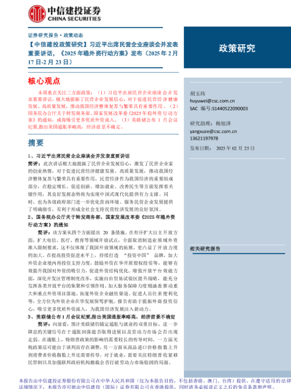【中信建投证券】【20250225】习近平出席民营企业座谈会并发表重要讲话,《2025年稳外资行动方案》发布-13页