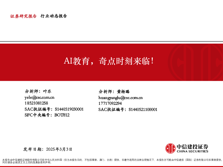 【中信建投证券】【20250303】教育行业:AI教育,奇点时刻来临!-44页