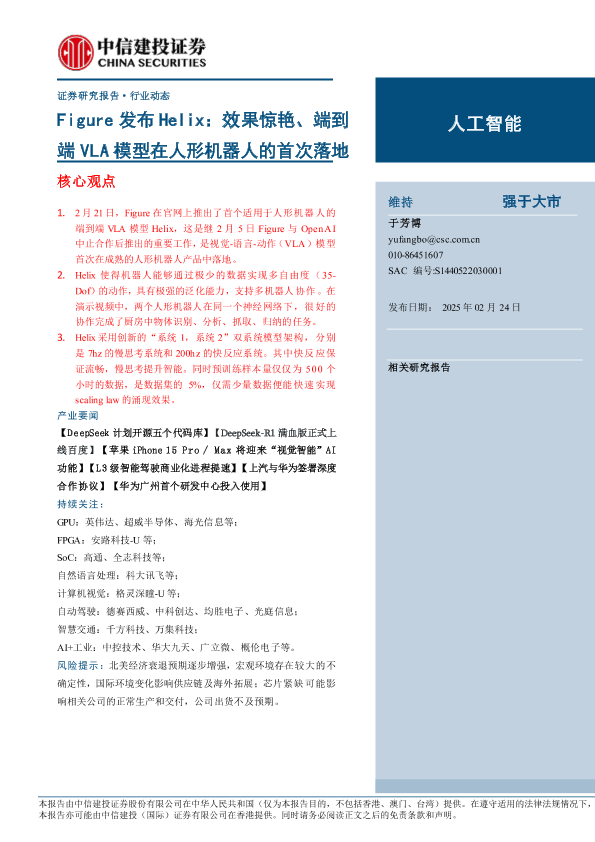 【中信建投证券】【20250224】Figure发布Helix:效果惊艳、端到端VLA模型在人形机器人的首次落地-13页