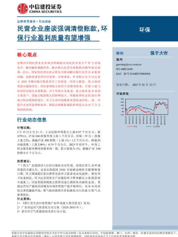 【中信建投证券】【20250223】2025年03月07日更新-【中信建投】环保行业:民营企业座谈强调清偿账款,环保行业盈利质量有望增强-12页