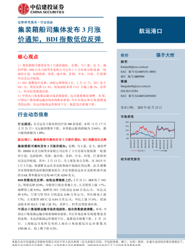 【中信建投证券】【20250223】2025年03月07日更新-【中信建投】航运港口行业动态:集装箱船司集体发布3月涨价通知,BDI指数低位反弹-24页