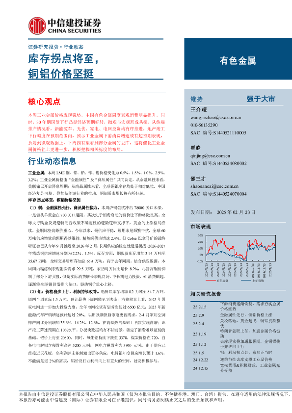 【中信建投证券】【20250223】2025年03月11日更新-【中信建投】有色金属行业:库存拐点将至,铜铝价格坚挺-12页