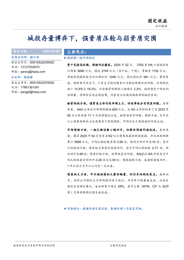 【华安证券】【20250305】2025年03月13日更新-【华安证券】固定收益点评报告:城投存量博弈下,强资质压舱与弱资质突围-20页