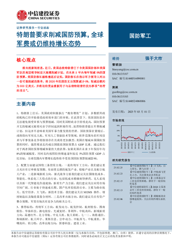 【中信建投证券】【20250301】国防军工行业:特朗普要求削减国防预算,全球军费或仍维持增长态势-22页