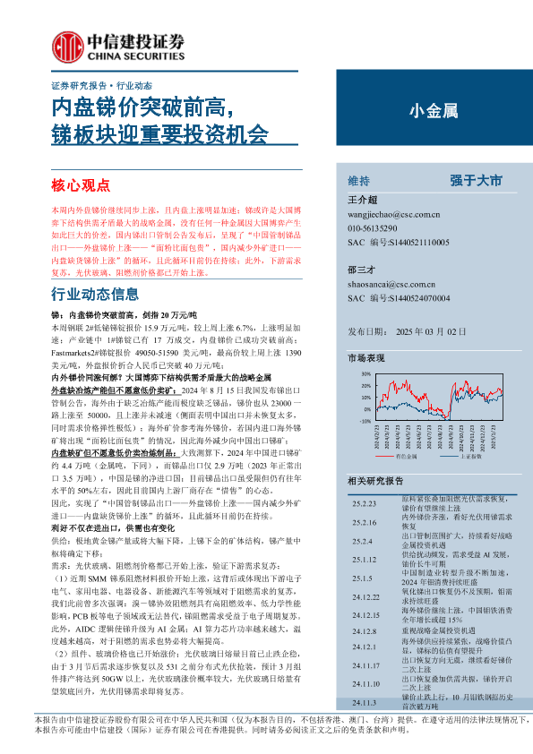 【中信建投证券】【20250302】2025年03月17日更新-【中信建投】小金属行业:内盘锑价突破前高,锑板块迎重要投资机会-10页
