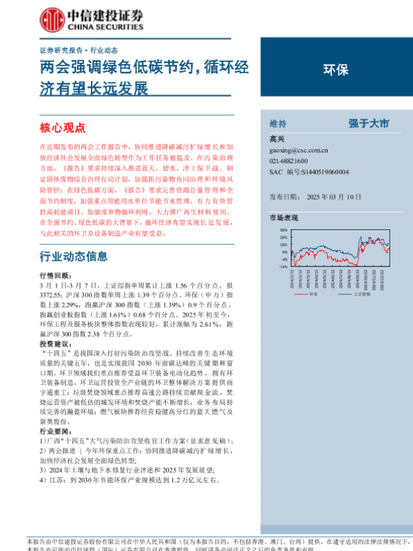 【中信建投证券】【20250310】环保行业:两会强调绿色低碳节约,循环经济有望长远发展-12页