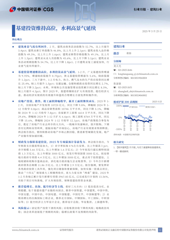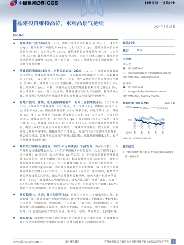 【银河证券】【20250404】建筑行业行业月报:基建投资维持高位,水利高景气延续-20页