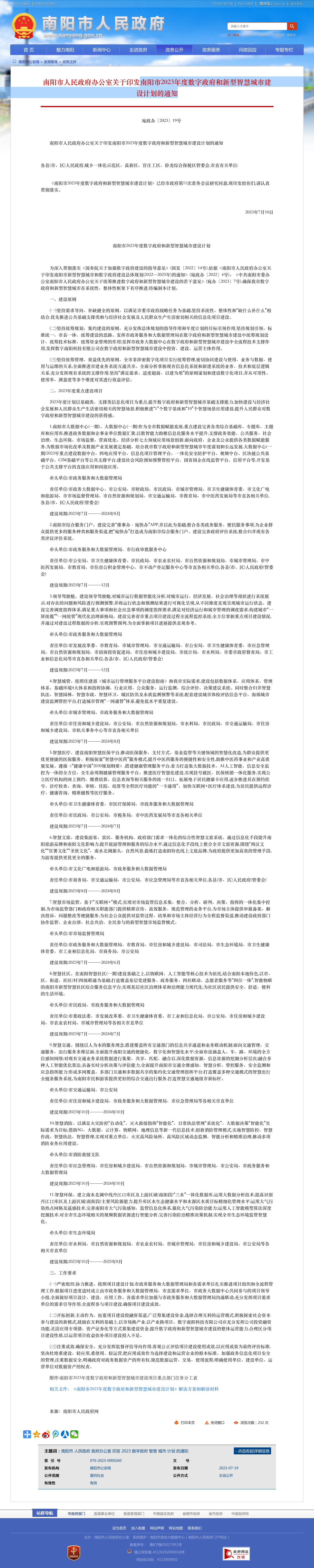 【南阳市人民政府办公室】【20230710】南阳市2023年度数字政府和新型智慧城市建设计划的通知-1页