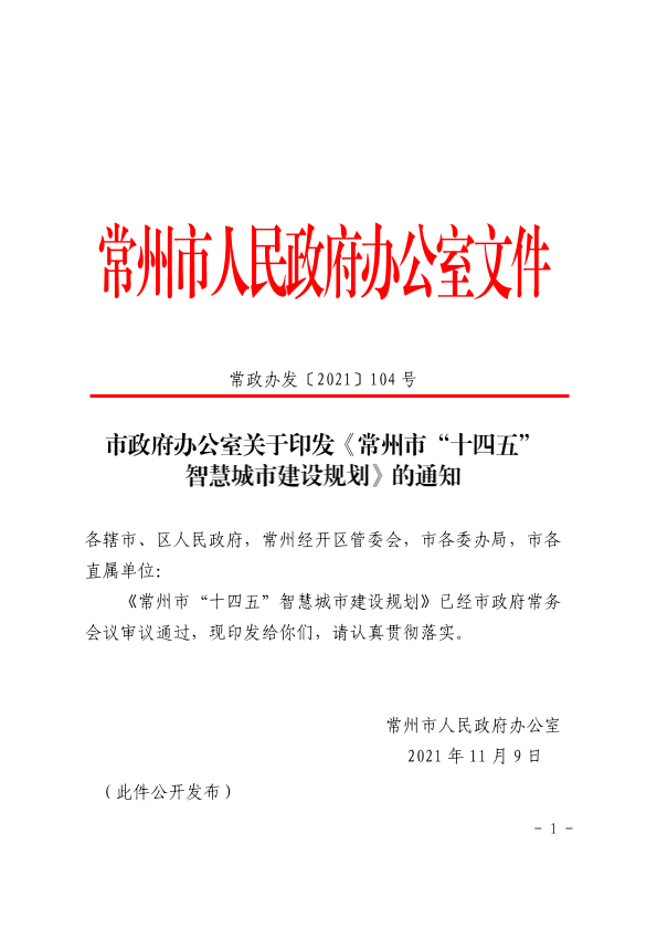 信息化建设 十四五规划 常州市 智慧城市 智慧治理