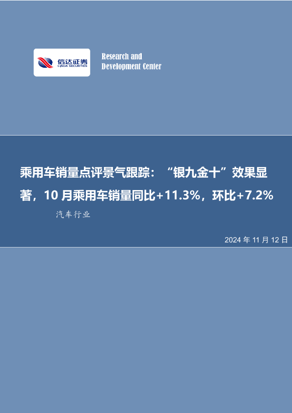 【信达证券】【20241112】乘用车销量点评景气跟踪:“银九金十”效果显著,10月乘用车销量同比25,环比25-10页