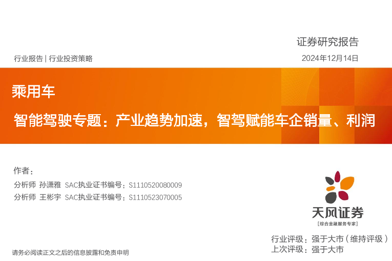 【天风证券】【20241214】2024年12月18日更新-智能驾驶专题:产业趋势加速智驾赋能车企销量、利润-15页